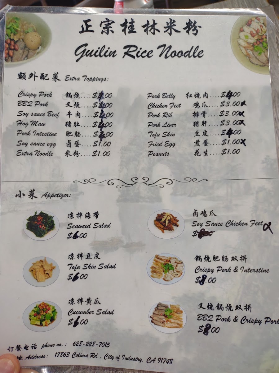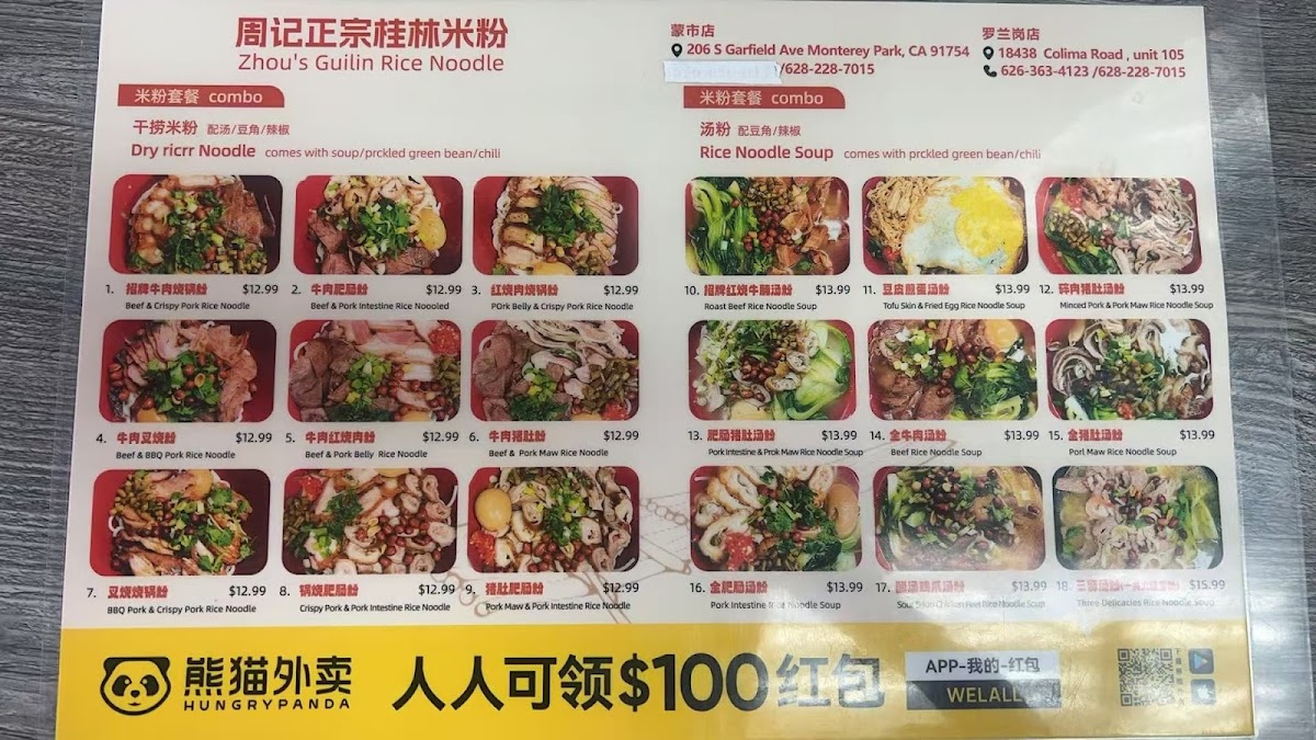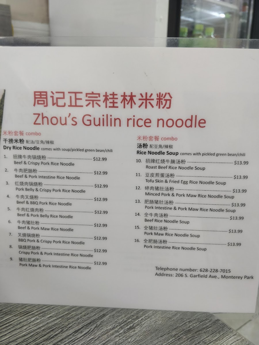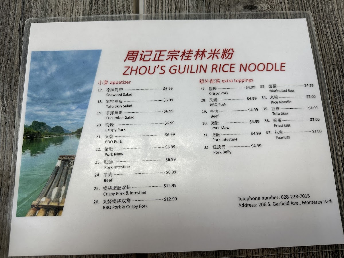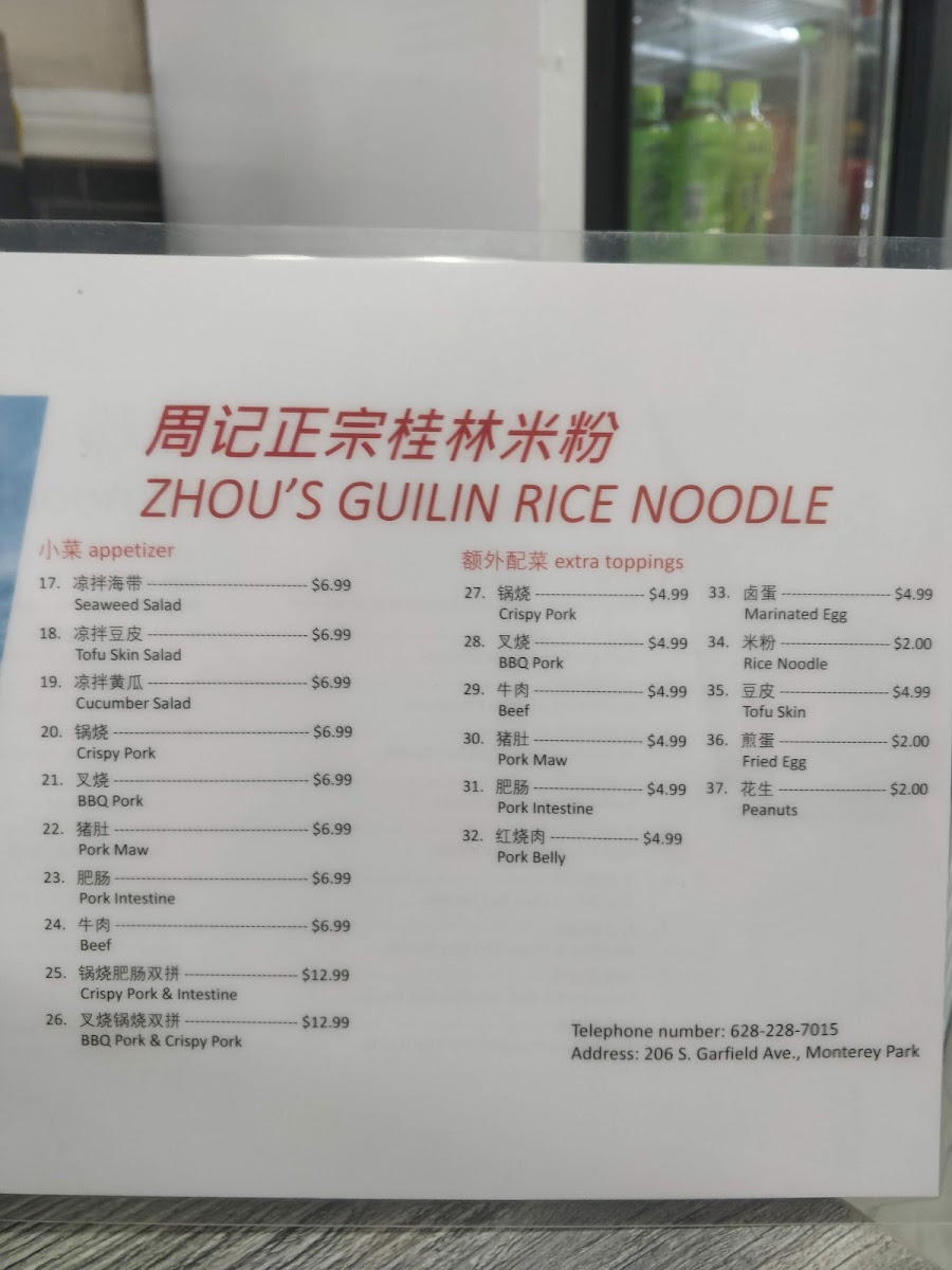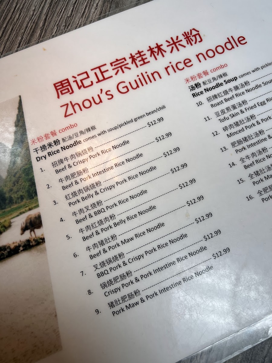 Zhou's Guilin Rice Noodle Menu